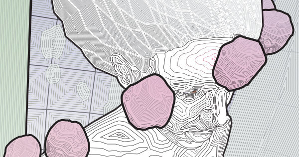 An Oni Daikijin mask over geometric background - the dark version